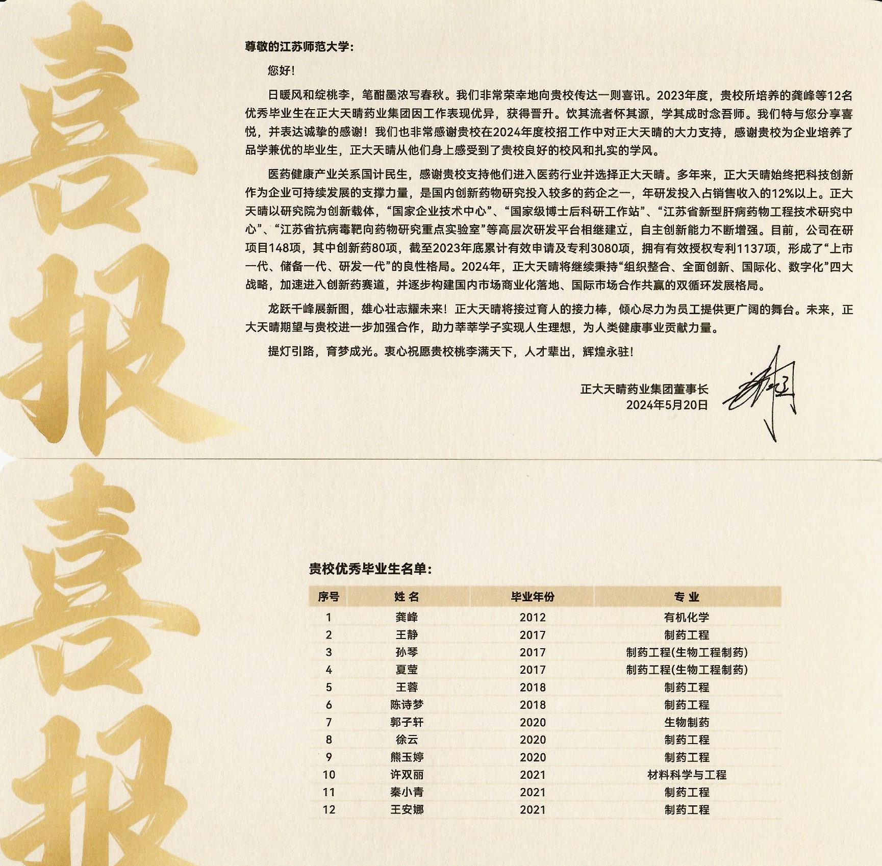 一封來自用人單位的喜報