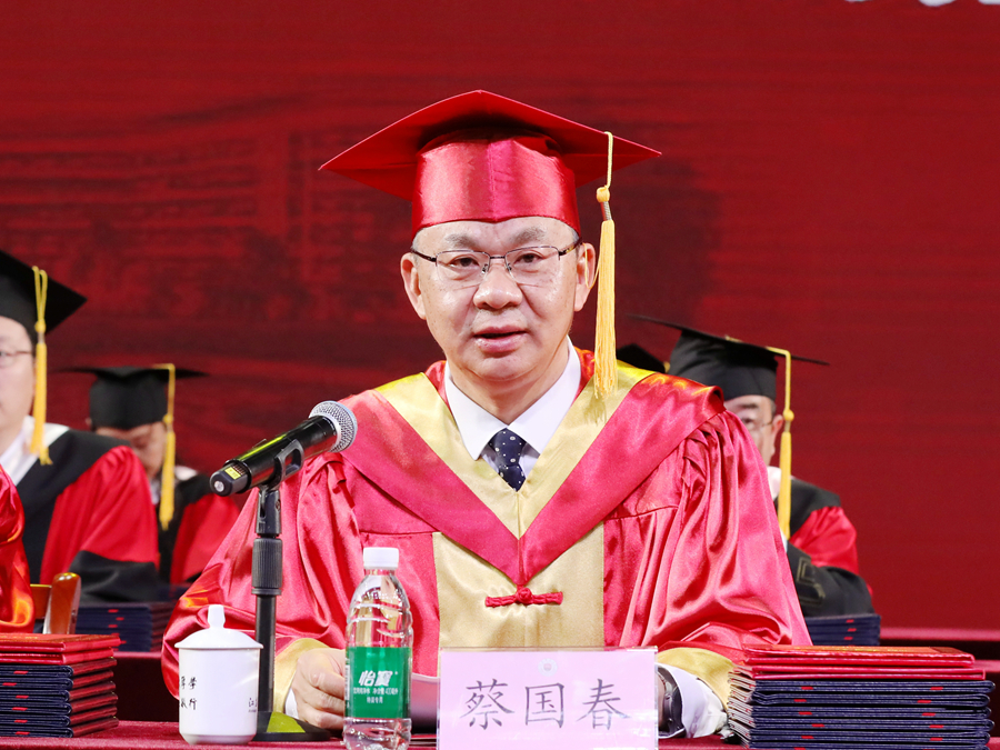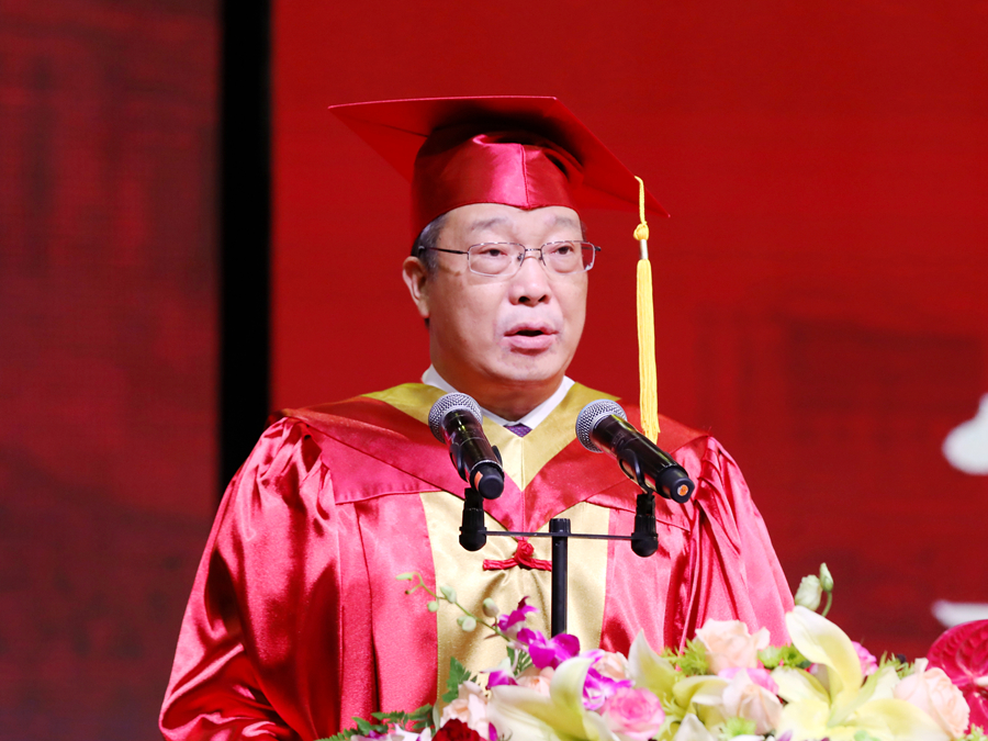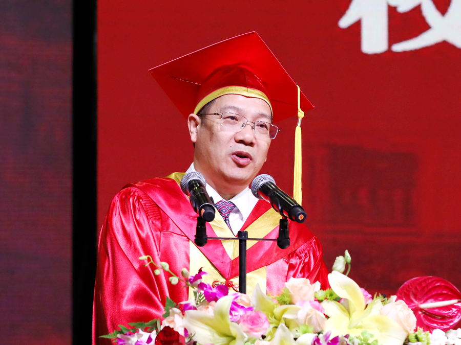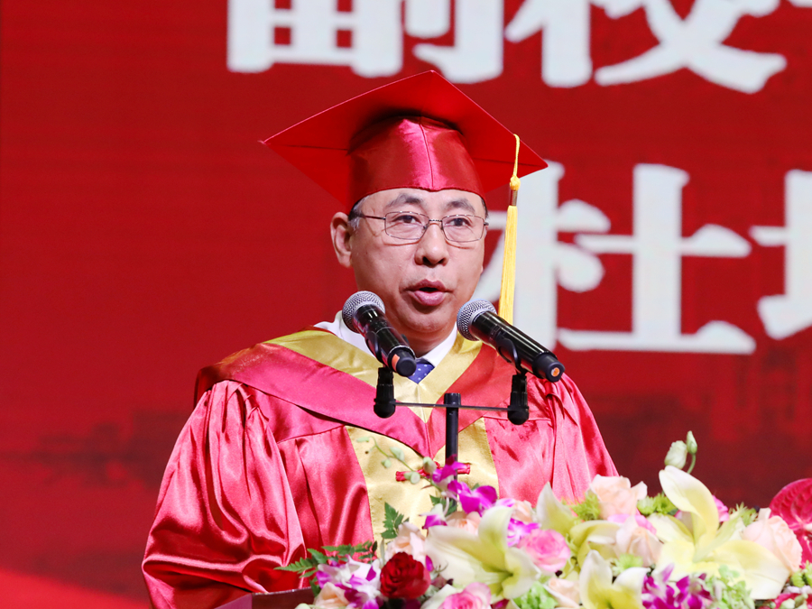 伴隨著莊嚴的國歌聲,畢業(yè)典禮正式開幕。校長、校學(xué)位評定委員會主席周汝光在典禮上致辭,代表學(xué)校向即將開啟人生新篇章的畢業(yè)研究生們表示熱烈的祝賀,向悉心培育、默默支持畢業(yè)研究生們的導(dǎo)師、家人和所有付出辛勞的師生員工表示衷心感謝。周汝光以“以青春之名,赴時代之約”為題,飽含深情地回顧了全體畢業(yè)研究生攜手度過的師大歲月和在讀期間取得的成績。他寄語全體畢業(yè)研究生,要把個人的理想藍圖與中國式現(xiàn)代化的宏大偉業(yè)聯(lián)系起來,積極投身祖國波瀾壯闊的建設(shè)實踐之中,與社會發(fā)展同頻共振,不斷增強做中國人的志氣、骨氣、底氣。要堅定信念,做矢志不渝的愛國者;要接續(xù)奮斗,做不負時代的實干家;要心胸豁達,做從容不迫的樂天派。周汝光希望全體畢業(yè)研究生秉持“崇德厚學(xué) 勵志敏行”的校訓(xùn),惟實勵新、精進臻善,帶著母校的祝福奔赴下一場人生旅途,盡情憧憬、勇敢熱愛、不懈奮斗。
