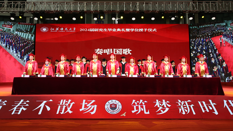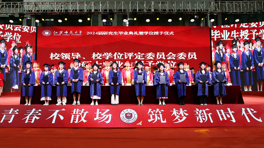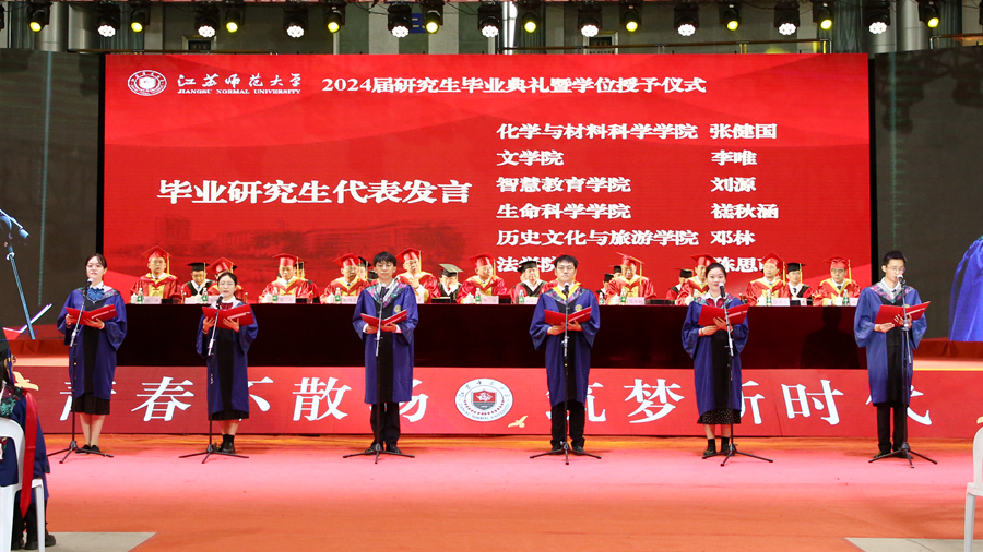 全體2024屆畢業(yè)研究生將肩負“江蘇師大人”這個值得珍藏一生的印記,在廣闊的舞臺施展才干,為偉大的祖國建功立業(yè),無懼風雨,奔赴夢想,奮力書寫為中國式現(xiàn)代化挺膺擔當?shù)那啻浩隆?/p>