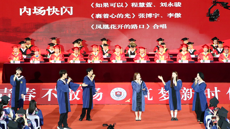 畢業(yè)典禮開始前,音樂學(xué)院研究生精心準備了快閃節(jié)目,表達了對母校的濃濃眷戀與對師友的依依不舍。畢業(yè)典禮在熱情洋溢的音樂串燒中圓滿落幕。