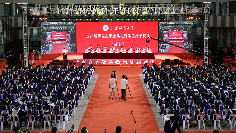 6月14日上午,江蘇師范大學(xué)2024屆研究生畢業(yè)典禮暨學(xué)位授予儀式在泉山校區(qū)體育館隆重舉行。全體校領(lǐng)導(dǎo)出席典禮,校學(xué)位評定委員會委員、承擔研究生培養(yǎng)任務(wù)的各學(xué)院領(lǐng)導(dǎo)、研究生導(dǎo)師代表、2024屆全體畢業(yè)研究生、研究生親屬代表、非畢業(yè)年級研究生代表參加典禮。校黨委副書記蔡國春主持典禮。