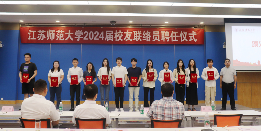 會上,相關領導介紹了校友聯絡員的工作職責,宣讀了2024屆校友聯絡員聘任文件,并為學院校友工作聯絡人、研究生和本科生校友聯絡員代表頒發聘書。文學院學科教學專業碩士研究生張益銘同學作為2024屆校友聯絡員代表發言,她深情回憶高中數學老師、大學班主任、研究生導師等一批“江蘇師大人”對自己成長發展的影響,表達對母校和老師的深深感恩,表示將時刻銘記“江蘇師大人”身份,不負學校重托,履行好校友聯絡員職責。