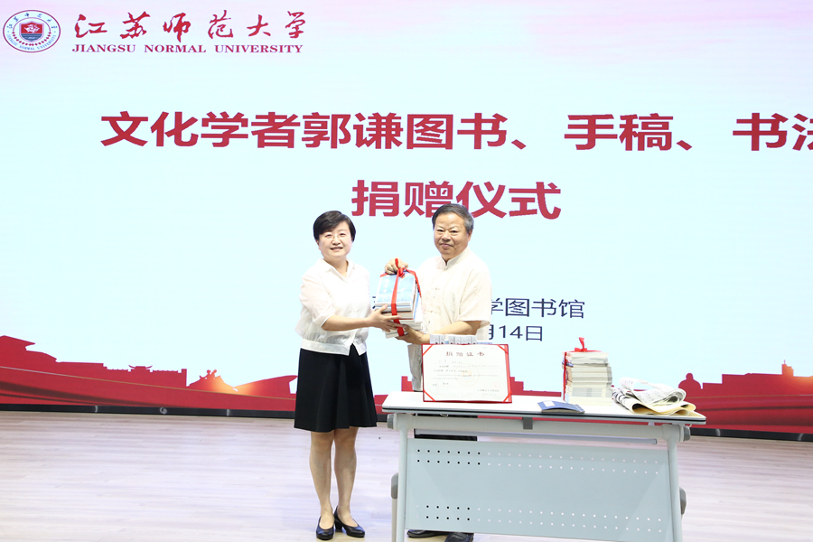 6月14日上午,我校在路演大廳舉辦了文化學者郭謙圖書、手稿、書法作品捐贈儀式。校黨委常委、副校長婁崢嶸,著名文化學者、中國書畫院院士郭謙及夫人邢志玖,郭謙在徐好友程淼先生,校圖書館主要負責同志及相關工作人員和學生代表共同見證了捐贈儀式。