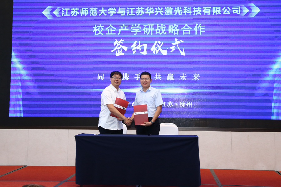 會上,中國科學院上海光學精密機械研究所范滇元院士作了題為“中國激光產業(yè)機遇與發(fā)展”的主題報告;省國防科學技術工業(yè)辦公室副主任盧載貴、蘇州迅鐳激光科技有限公司董事長顏章健、奧普天成(廈門)光電有限公司董事長劉鴻飛、江蘇華興激光科技有限公司總經理羅帥分別作行業(yè)領域報告;徐州市高新技術產業(yè)開發(fā)區(qū)負責同志進行了徐州市產業(yè)發(fā)展情況及政策環(huán)境推介;上海交通大學和江蘇師范大學分別介紹了相關領域科技成果;有關企業(yè)介紹了有關技術研究應用及需求情況;江蘇師范大學分享了校地產學研合作經驗;江蘇師范大學物理與電子工程學院分別與蘇州迅鐳激光科技有限公司、奧普天成(廈門)光電有限公司、江蘇華興激光科技有限公司簽訂校企產學研戰(zhàn)略合作協(xié)議。