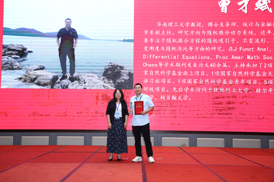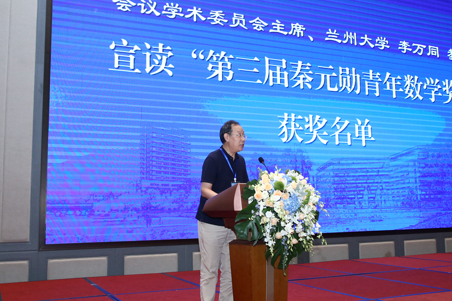李萬同代表評獎委員會宣讀第三屆秦元勛青年數(shù)學獎獲獎名單。甘少波、肖冬梅、張偉年分別為哈爾濱工業(yè)大學(威海)陳珊珊教授、華南理工大學曾才斌教授、新疆醫(yī)科大學王蕾教授頒發(fā)第三屆秦元勛青年數(shù)學獎證書和獎杯。