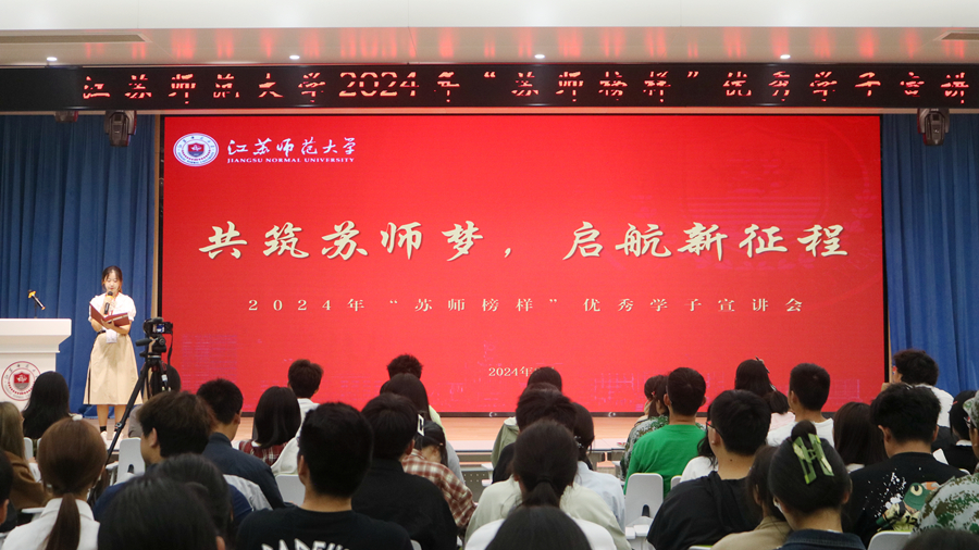 為全面貫徹黨的二十大和二十屆三中全會精神,落實立德樹人根本任務(wù),引導(dǎo)和激勵廣大同學(xué)做有理想、敢擔(dān)當、能吃苦、肯奮斗的新時代好青年,9月25日,我校在泉山校區(qū)路演大廳舉行2024年度“蘇師榜樣”優(yōu)秀學(xué)子宣講會,我校2024年度“蘇師榜樣”優(yōu)秀學(xué)子代表、學(xué)生工作處相關(guān)人員以及2024級新生代表參加活動。