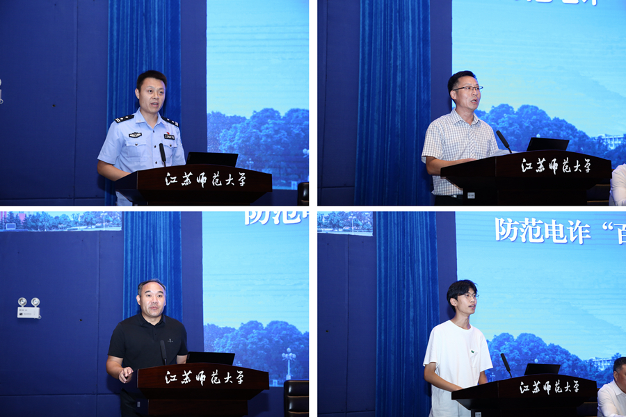 方忠代表學校黨政向銅山區公安干警長期以來對學校安全穩定工作給予的關心、支持和幫助表示感謝,并就做好反詐宣傳教育、預警防范、協同聯動等提出工作要求。他指出,安全穩定的校園環境是學校高質量發展的重要基石和關鍵保障,各單位要深入學習貫徹習近平總書記關于打擊治理電信網絡詐騙犯罪工作的重要指示精神,積極配合銅山區公安局做好防范電詐“百日行動”,不斷提升我校反詐宣教工作的能力和水平;要密切配合,形成校園反詐宣教合力,通過教育引導、氛圍營造、校警聯動等方式,構建起全民反詐的銅墻鐵壁。