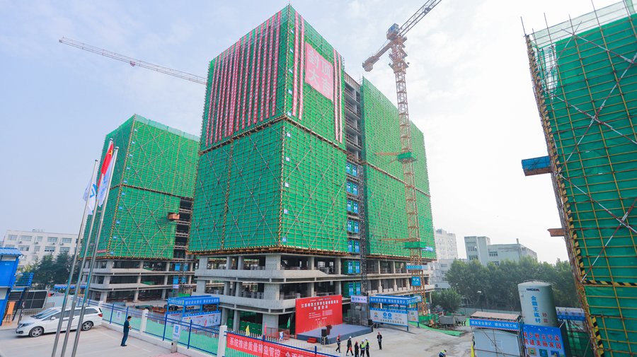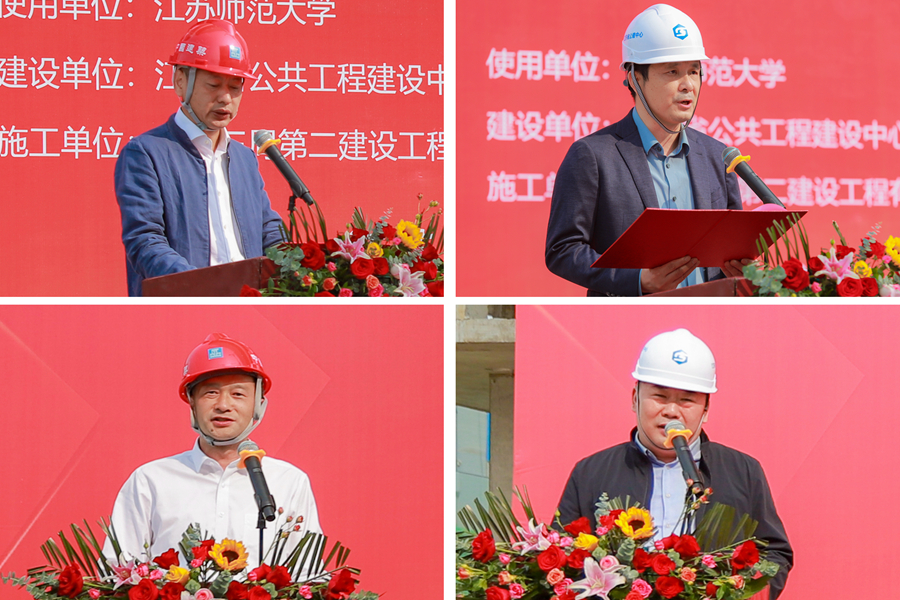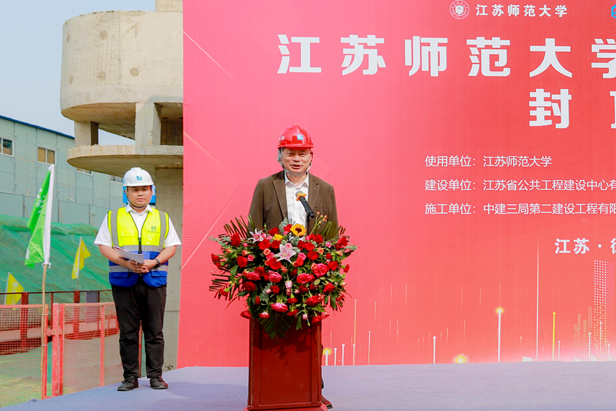 杜青周、沈志剛及各參建單位領(lǐng)導(dǎo)分別致辭,共同慶祝項目主體結(jié)構(gòu)封頂這一重要里程碑事件,對項目建設(shè)進(jìn)行階段性總結(jié)并提出工作要求。張其飛在致辭中對項目建設(shè)工作給予充分肯定,并強調(diào)工程質(zhì)量,百年大計,封頂只是項目建設(shè)的關(guān)鍵一步,后續(xù)工作依然艱巨。希望在省公建中心統(tǒng)一指揮下,各參建單位加強協(xié)同配合,嚴(yán)格施工程序,強化質(zhì)量控制和安全管理,保質(zhì)保量早日竣工,投入使用,惠澤萬千學(xué)子。方忠宣布江蘇師范大學(xué)學(xué)生宿舍樓正式封頂。