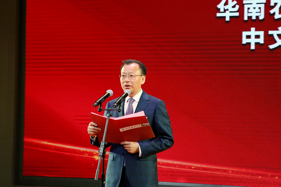 94屆校友代表、華南農業大學黨委書記李鳳亮致辭。他向母校72周年華誕和成功獲批博士學位授權單位獻上誠摯熱烈的祝賀,感謝母校的培育和恩師們的教誨,強調廣大校友將謹記母校“崇德厚學,勵志敏行”校訓,在不同行業和崗位上踏實做人,認真做事,以所學所得回報社會、回報國家,為母校爭光。