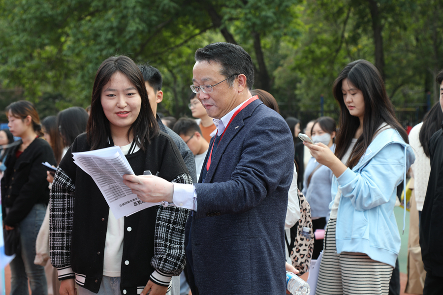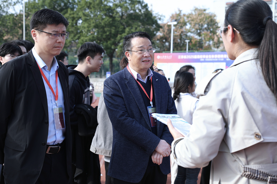 張玉勤和黃煒等領導老師也來到現場走訪調研,了解用人單位的基本概況、發展規模以及招聘安排等,開展了“訪企拓崗”,積極推薦我校畢業生。他們還與現場畢業生們進行交流,了解他們的就業意愿和就業規劃,指導求職學生完善簡歷,鼓勵他們樹立正確的擇業和就業觀念,積極響應“服務新質生產力”的號召,將個人成長融入國家、社會發展的大局之中,為自己的科技創新、專業技能、綜合素養找到施展的舞臺。