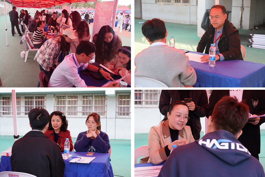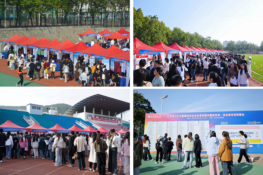10月26日下午,由江蘇省教育廳、江蘇省人力資源和社會保障廳等單位主辦,江蘇省高校招生就業指導服務中心和我校承辦的江蘇省2025屆高校畢業生秋季招聘月暨教育類、綜合類江蘇師范大學專場招聘會在泉山校區田徑場舉辦。校黨委常委、副校長張玉勤,省高校招生就業指導服務中心副主任黃煒,參展用人單位招聘工作人員,我校學生工作處、研究生工作部負責同志,各學院黨委副書記、畢業班輔導員、班主任及8300余名學生參加活動。