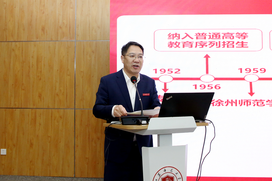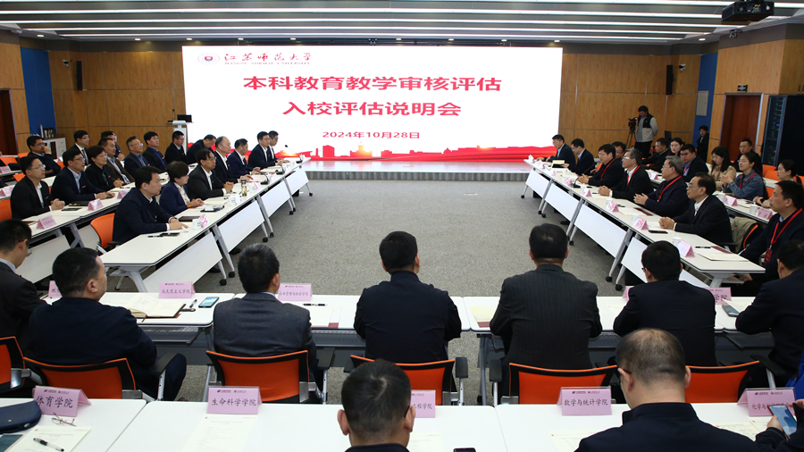 10月28日,入校評估說明會在泉山校區分析測試中心300會議室召開。專家組組長、浙江師范大學黨委書記蔣云良,專家組副組長、南通大學原黨委書記浦玉忠,專家組成員彭育園、張凌浩、俞洪亮、沈忠華、劉建民,專家組秘書趙遠暢、嚴娟、梁瑩,江蘇省教育評估院副院長吳立平、項目主任許慧、王欣蕊及我校在徐校領導出席會議。學校職能部門負責人、學院院長、教師代表和學生代表參加會議。會議由副校長趙鵬主持。