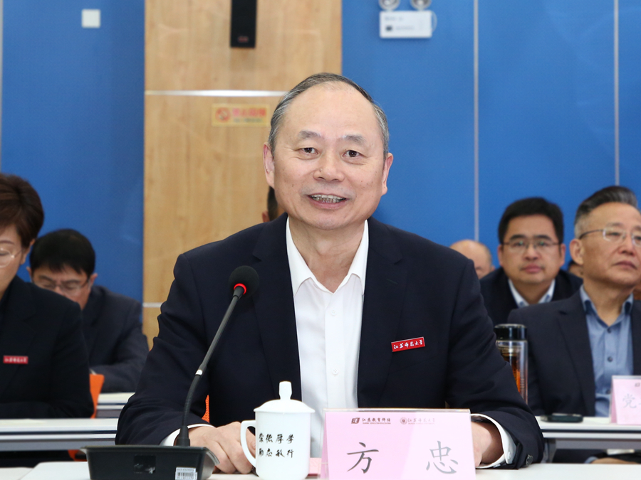 蔣云良代表專家組向學校反饋審核評估整體情況。他充分肯定學校本科教育教學改革與建設成效。他表示,江蘇師范大學落實立德樹人根本任務,三全育人工作提質增效;堅守師范教育主責主業,服務基礎教育發展成績突出;引導學科專業交叉融合,探索發現人才培養特色明顯;圍繞學校一流辦學目標,標志性成果建設已初見成效。隨后,專家組成員圍繞本科教育教學審核評估指標,分別反饋個人考察意見。
