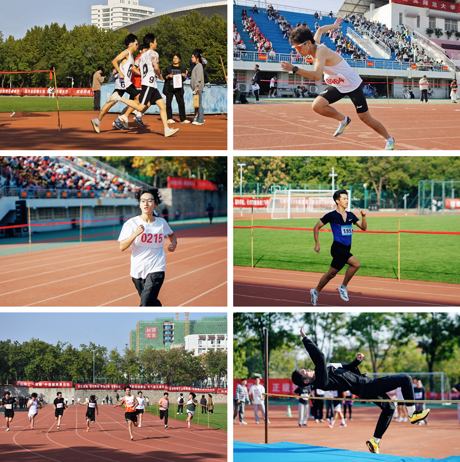 10月31日到11月1日,江蘇師范大學第五十八屆田徑運動會在泉山校區運動場舉辦。共有來自學生組和教工組62個代表隊的1204名運動員,進行了57個項目的角逐,打破了2 項校運會紀錄。本屆田徑運動會參與人數多、比賽項目多、賽事競爭激烈,運動員們堅持“友誼第一,比賽第二”,以頑強拼搏、奮勇爭先的拼搏精神完成了各項賽事,用實際行動生動詮釋了“更快、更高、更強、更團結”的奧林匹克精神,賽場秩序井然有序。