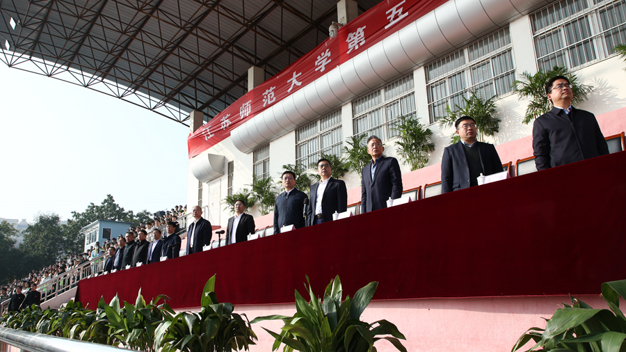 10月31日上午,運動會舉行了開幕式,全體在校校領導以及校體育委員會全體委員出席開幕式。開幕式上,各代表隊依次入場,進行了精彩紛呈又富有各學院專業特色的體育文化展示,充分展現了江蘇師范大學青年學子的青春風采。展演結束后,舉行了莊嚴的升國旗儀式,運動員和裁判員代表分別宣誓,將以真誠的競賽態度,公平的體育精神,良好的競技與工作狀態,認真比賽,公正裁判,確保圓滿完成各項賽事。