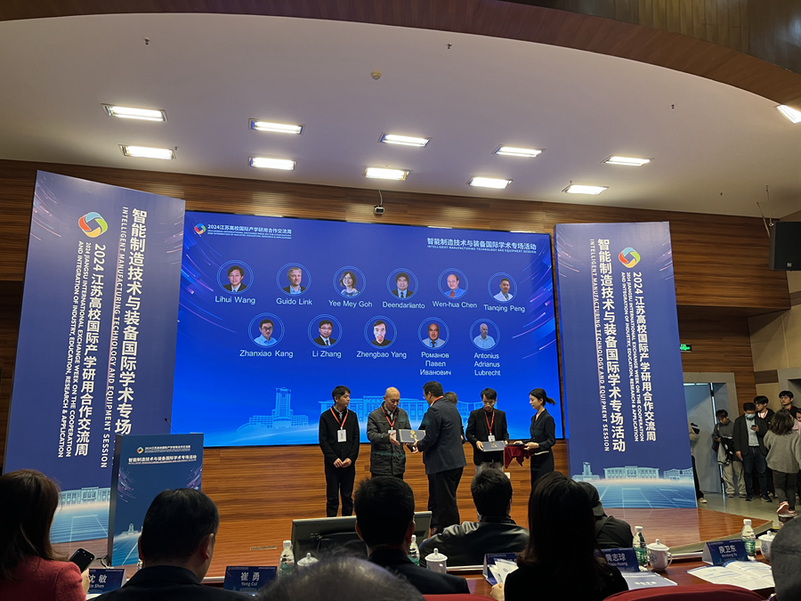 近日,由江蘇省教育廳主辦的2024江蘇高校國際產學研用合作交流周開幕式在河海大學舉行。來自34個國家和地區63所高校校領導、院士以及科研機構、國際組織和企業代表等300余人圍繞“產學研用深度融合·國際合作共創未來”主題展開深入交流。教育部國際合作與交流司二級巡視員席茹、江蘇省人民政府副秘書長邱志強出席開幕式并講話,省教育廳廳長江涌發表視頻致辭,我校黨委常委、副校長張玉勤出席開幕式,并在由我校與南京航天航空大學、江蘇大學共同承辦的“智能制造技術與裝備”國際學術專場活動上致辭,國際合作交流處、機電工程學院相關負責人陪同參加活動。