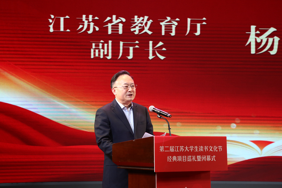 楊樹兵在講話中指出,黨的十八大以來,以習(xí)近平同志為核心的黨中央深入實(shí)施文化惠民工程,推動(dòng)全民閱讀的質(zhì)量水平得到顯著提升。江蘇省委、省政府深入實(shí)施全民閱讀工作,加快構(gòu)建與“建成社會(huì)主義文化強(qiáng)國(guó)先行區(qū)”相適應(yīng)的現(xiàn)代公共閱讀服務(wù)體系。省教育廳以高校新文科建設(shè)為謀劃和抓手,通過啟動(dòng)大學(xué)生讀書文化節(jié)系列活動(dòng),推動(dòng)讀書行動(dòng)落地見效,形成了內(nèi)容拓展、載體升級(jí)和機(jī)制協(xié)同的良好局面。他希望,廣大江蘇青年學(xué)子要珍惜美好的讀書時(shí)光,將修身立德作為讀書之志,將習(xí)慣養(yǎng)成作為讀書之趣,將知行合一作為讀書之用,在閱讀中汲取知識(shí)、激發(fā)興趣、充實(shí)自我、提升本領(lǐng),迅速成長(zhǎng)為政治立場(chǎng)堅(jiān)定、精神風(fēng)貌昂揚(yáng)、道德品質(zhì)卓越、文化素養(yǎng)深厚的新時(shí)代有為青年。