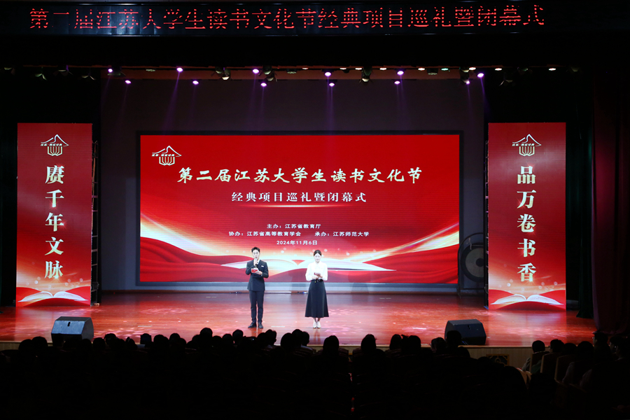 11月6日,第二屆江蘇大學(xué)生讀書文化節(jié)經(jīng)典項(xiàng)目巡禮暨閉幕式在我校馬可音樂廳舉行。省教育廳副廳長(zhǎng)楊樹兵出席活動(dòng)并講話。全省部分高校領(lǐng)導(dǎo),我校黨委書記方忠,副校長(zhǎng)趙鵬,以及師生代表共計(jì)400余人現(xiàn)場(chǎng)參加閉幕式。