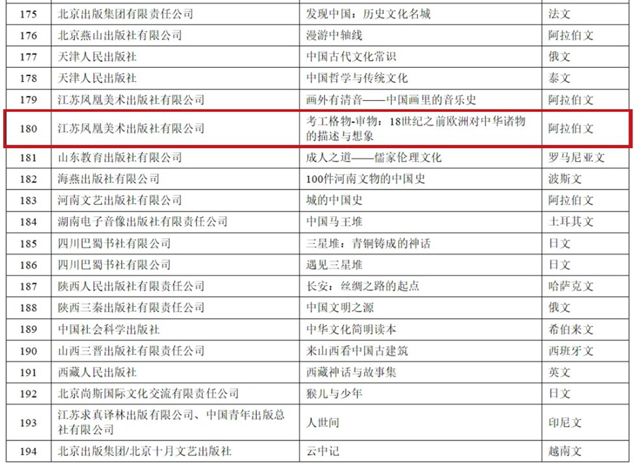 本次成功申報項目《審物:18世紀之前歐洲對中華諸物的描述與想象》,是潘天波教授所著《考工格物》(全5卷含《齊物》《貲物》《審物》《潤物》《開物》,江蘇鳳凰美術出版社)系列圖書的一種,該書系曾成功入選2022年國家出版基金資助項目,榮獲江蘇省新聞出版局、江蘇省出版協會“2023蘇版好書”,并入選2024年第3期人文社科“中文原創好書榜”。這是潘天波教授繼《漆彩——絲綢之路與中國漆器》入選世界著名出版集團——德國施普林格出版集團(Springer Group)2023年“一帶一路”出版合作典型案例項目(黃山書社,輸出文種為英文)之后,又一成果“走出國門”,是我校在國家“走出去”重點圖書翻譯項目領域的重要突破,展示了我校在用活用好中華優秀傳統文化資源、講好中國故事、傳播好中國聲音方面的研究實力,為促進中外文化交流與互鑒作出了積極貢獻。