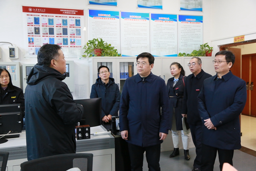 匯報會結束后,檢查組仔細查閱了學校安全工作臺賬資料,并先后來到物理與電子工程學院實驗室、消控指揮中心、泉山校區(qū)東大門、110指揮中心、玉泉河餐廳等重點部位和場所現(xiàn)場檢查。檢查組充分肯定了學校在消防安全隱患排查整治、實驗室安全管理、校園技防能力建設及全覆蓋開展安全教育演練等方面取得的成績,并就進一步做好校園安全管理工作提出意見和建議。