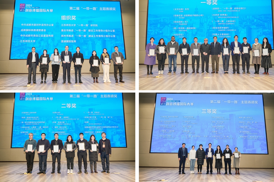 會上,還發布了第二屆“講好中國故事”創意傳播國際大賽“一帶一路”主題賽45件獲獎作品名單及8個組織獎獲獎名單并頒獎。其中,一等獎作品10件,二等獎作品15件,三等獎作品20件。