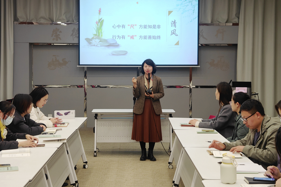 本次培訓特別邀請了徐州市紀委、監委宣傳部部長龐方來校指導。龐方以案說紀、以案說法,選取了近年來查處的4個違紀違法典型案例,尤其是年輕干部違紀違法典型案件的警示教育片,并以此展開研討。龐方的講解語言生動,論證嚴密,案例與故事穿插,循循善誘,深入淺出,引導大家把自己擺進去、把職責擺進去、把工作擺進去,對照案例檢查自身工作和生活中存在的問題。現場交流環節,參會的年輕干部代表結合自身工作職責交流學習感受和體會,現場氣氛嚴肅而活潑。