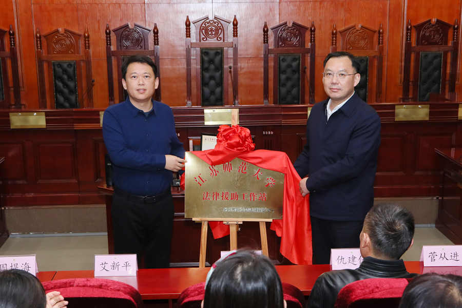 為積極貫徹落實中共中央社會工作部、教育部、司法部《關于加強高校法律援助志愿服務工作的意見》,法學院與銅山區法律援助中心持續加強交流合作,該中心在我校設立了法律援助工作站?;顒悠陂g,校黨委常委、紀委書記閭浩和徐州市司法局黨組書記、局長艾新平共同為工作站揭牌。