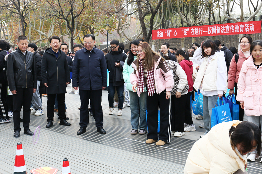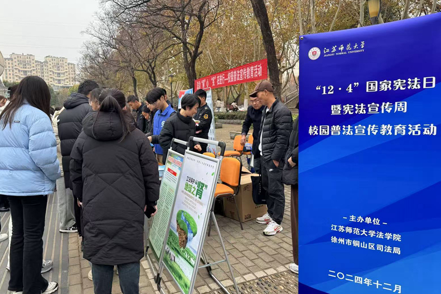 12月4日下午,我校舉辦國家憲法日暨憲法宣傳周校園普法宣傳教育活動。校黨委常委、紀委書記閭浩和徐州市司法局黨組書記、局長艾新平出席活動,銅山區委政法委、銅山區司法局、法學院負責同志、校普法志愿者大隊志愿者及師生代表參加活動。