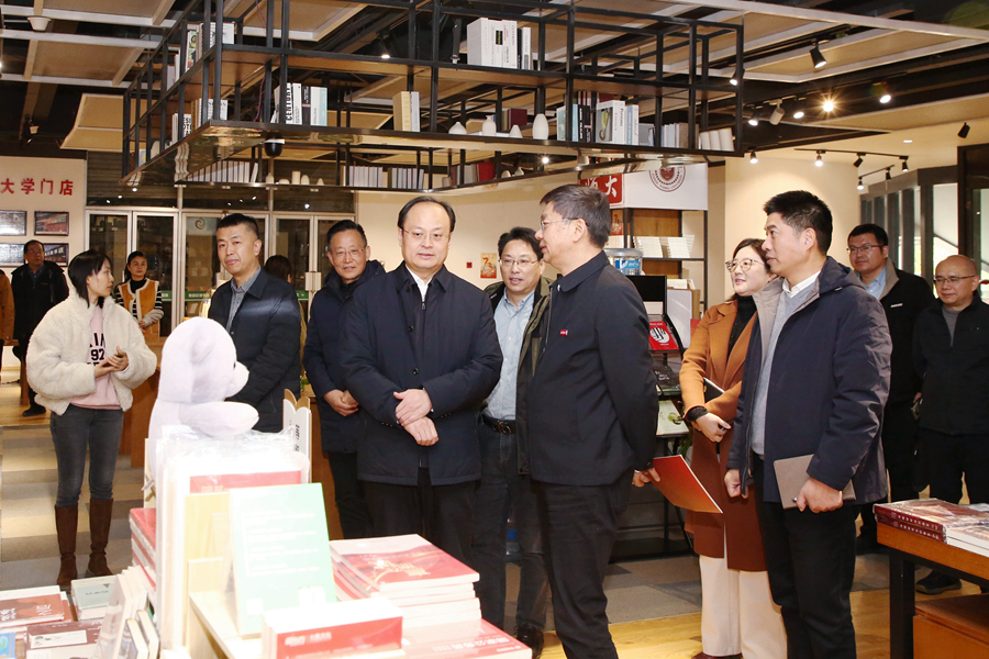 李貞強對我校的熱情接待表示感謝,并簡要介紹了交流考察意向,對校企雙方進一步深化合作作出展望。李貞強表示,江蘇鳳凰出版傳媒集團有限公司是省屬重點國有文化企業,控有鳳凰傳媒、鳳凰股份兩家主板上市公司,連續十六屆入選“全國文化企業30強”,鳳凰傳媒連續四年入選“全球出版50強”,位列國內出版企業第一。江蘇師范大學作為省部共建高校和高水平大學建設高校,在社會服務和文化傳承與發展方面具有鮮明發展特色,校企雙方自2015年以來在諸多領域都有深入合作,尤其是合作共建校園實體書店項目,已經成為校企合作、校企共建的成功案例。希望通過本次調研活動,能夠發掘更多的校企合作著力點,在書刊出版和優秀傳統文化傳承等諸多方面拓展更多新的合作項目。作為校友的李貞強還回顧了在校求學時的經歷,對母校發展給予了美好祝愿。
