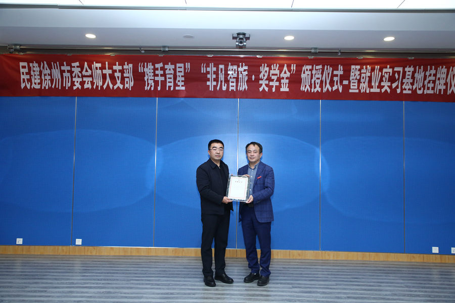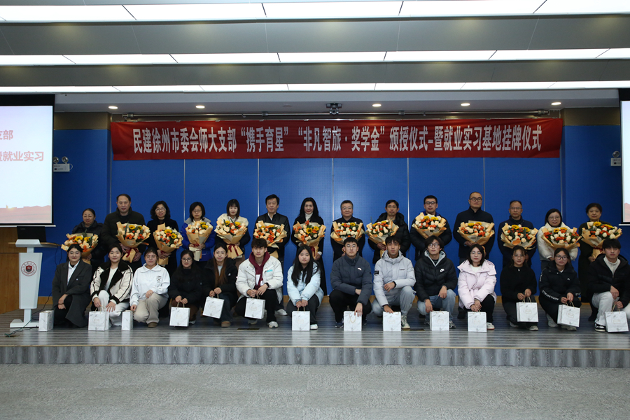 12月11日,民建徐州市委會江蘇師大支部“攜手育星獎學金”頒授暨就業實習基地掛牌儀式在分析測試中心300會議室舉行。民建江蘇省委會副主委、徐州市人民政府副市長、民建徐州市委會主委林斌,校黨委書記芮國強,校黨委常委、組織部部長、統戰部部長黃德志,民建徐州市委會副主委康建榮、孫統賢等出席會議。會議由校黨委副書記蔡國春主持,民建徐州市委會社會服務委員會全體委員,民建徐州市委江蘇師大支部全體會員,學校相關職能部門負責同志和獲獎學生代表參加了活動。