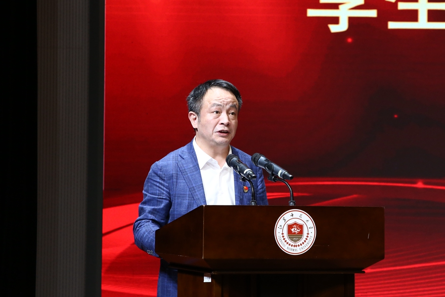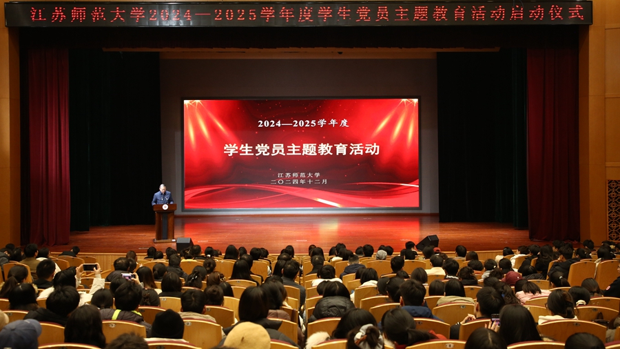 芮國強在啟動儀式上作動員講話。他指出,根據青年學生黨員群體的特點,量身打造具有江蘇師大特色的主題教育活動,不僅是廣大學生黨員認真學習貫徹習近平新時代中國特色社會主義思想,強化黨性教育、筑牢忠誠根基的重要舉措,也是踐行社會主義核心價值觀、弘揚優秀校園文化的實際行動。芮國強希望廣大青年學生黨員堅持思想鑄魂,強化黨性修養,持續用習近平新時代中國特色社會主義思想鑄牢信仰之基、補足精神之鈣;注重知行合一,踐行黨的宗旨,立志做有理想、敢擔當、能吃苦、肯奮斗的新時代好青年;強化紀律意識,嚴守紀律規矩,在思想上筑牢紀律防線,把遵規守紀刻印在心里。