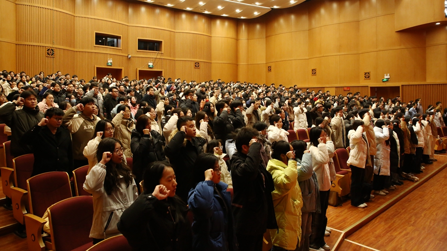 12月13日下午,由校黨委組織部、黨校聯合舉辦的2024-2025學年度學生黨員主題教育活動啟動儀式暨專題黨課在馬可音樂廳舉行。校黨委書記、黨校校長芮國強,校黨委常委、副校長商亮出席啟動儀式,機關黨群部門領導、各學院學生黨支部書記代表、學生黨員代表近400人參加活動。啟動儀式由校黨委常委、組織部部長、統戰部部長黃德志主持。