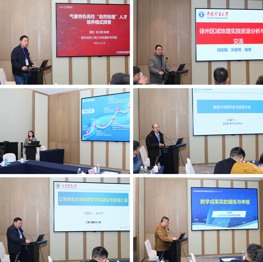 與會學者重點圍繞一流專業(yè)建設進展、研究生共享課程、江蘇省地理野外實習基地共享計劃等三個主題進行了交流討論。學者們還就氣象特色高校“自然地理”人才培養(yǎng)模式探索、徐州區(qū)域地理實踐資源分析與參賽交流、地理學科建設與發(fā)展、教學成果獎的凝練與申報等論題進行了匯報交流。