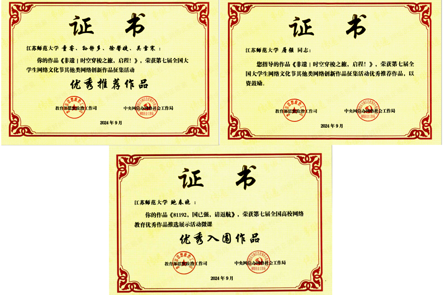 本屆“一節一推選”以“爭做校園好網民,匯聚網絡正能量,挺膺擔當建新功”為主題,旨在引導廣大師生樹立正確的網絡觀,弘揚社會主義核心價值觀,傳播網絡正能量,促進校園文化建設和學生全面發展。我校4項作品在全國50771件參賽作品中脫穎而出。由語言科學與藝術學院耿立波老師指導的音頻作品《聽見重慶》榮獲“優秀推廣作品”獎、科文學院王璇老師指導的音頻作品《不墜吾輩青云志》榮獲“優秀推廣作品”獎,科文學院屠強老師指導的其他類網絡創新作品《非遺|時空穿梭之旅,啟程!》榮獲“優秀推薦作品”獎。此外,在第七屆全國高校網絡教育優秀作品推選展示活動中,商學院鮑春曉老師的微課《81192,國已強,請返航》榮獲“優秀入圍作品”獎。
