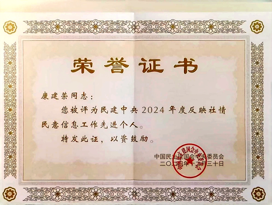 12月30日,民建中央2024年參政議政年會舉辦。我校康建榮教授被評為民建中央2024年度反映社情民意信息工作先進個人,在大會上接受表彰,并作為先進個人代表作了題為“守正創新 積極作為 著力推動社情民意信息工作提質增效”的交流發言。